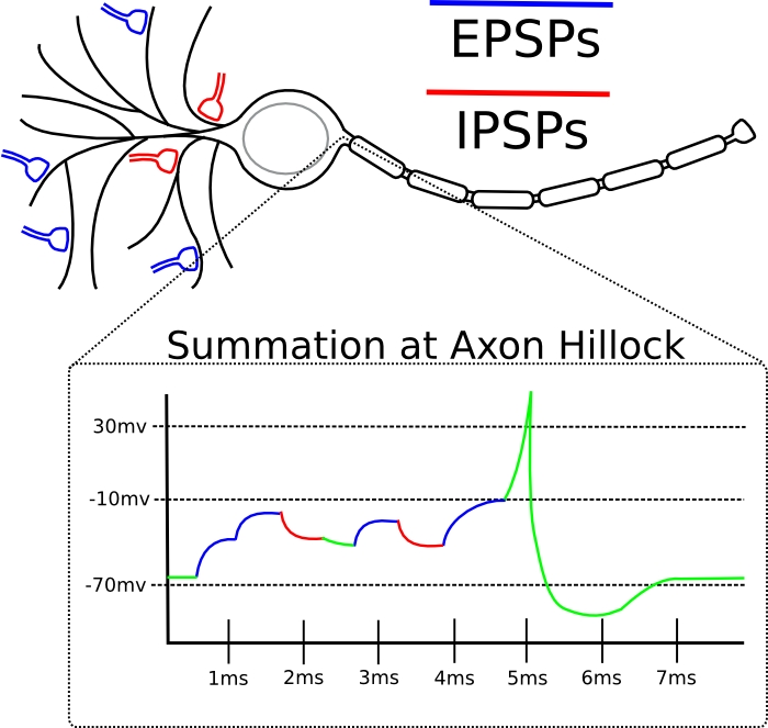 Although neurotransmitters can elicit complex postsynaptic effects, often they cause sudden changes in ionic movements across the membrane. These ionic movements produce the postsynaptic potentials that are added at the axon hillock; if the addition amounts to a sufficient depolarization, an action potential will occur.